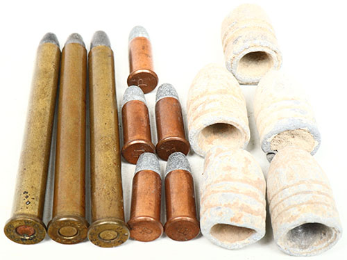 Lot of 12, (4) 25 cal rimfire shorts, P headstamp, (5) Civil war battle site bullets, (3) 25-25 cal (2) UMC & (1) WRA. Grade: Very Good ++ - Value: 30 to 60