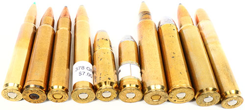 Lot of 10. Wildcat Cartridges. One each of the following: .30 Gibbs, 35 Belted Newton, 358 UMT, 358 Yukon, 375 Whelen, 378 GNR, 423 O.K.H., 450 Alaskan, 458 SOCOM, 458x1.15'' Barnes. Grade: Excellent - Value: 40 to 70