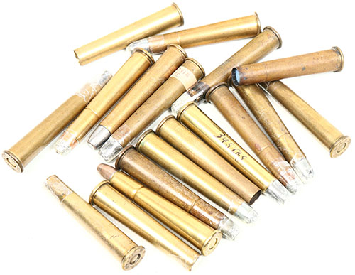 Lot of 18. 32-40 Winchester. All by Winchester. (12) Loaded rounds with several different bullet types. (4) blanks. (2) primed empty cases. Grade: Very Good + - Value: 40 to 75
