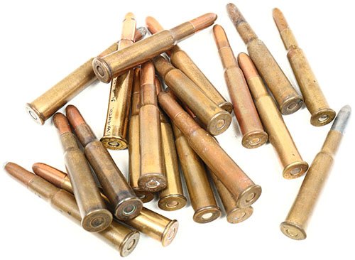 Lot of 20. .30-40 Krag. HS:''W.R.A. Co. 30 ARMY''. (12) RN CJ FMJ. (8) RN CJ SP. Grade: Very Good + - Value: 20 to 40