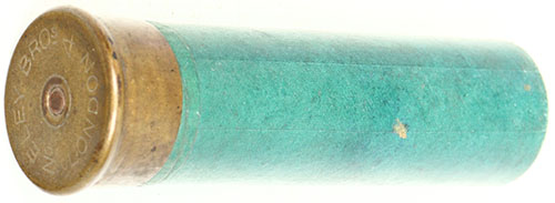 Eley Bros London No 4, Loaded 4 ga. paper shotshell, 3 3/4'' OAL, Eley Gastight cartridge case, solid shell. Grade: Excellent - Value: 30 to 100