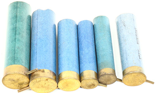 Lot of 6 Pinfire, empty paper cases, mixed gauges. Grade: Excellent - Value: 10 to 50
