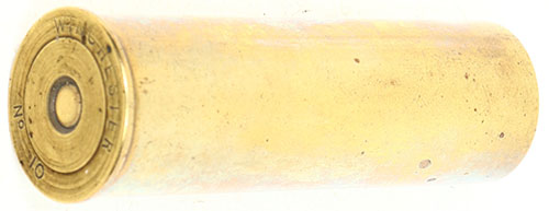 H/S= ''Winchester No 10'', loaded brass shell, 2 1/2'' OAL.. Grade: Very Good ++ - Value: 10 to 50
