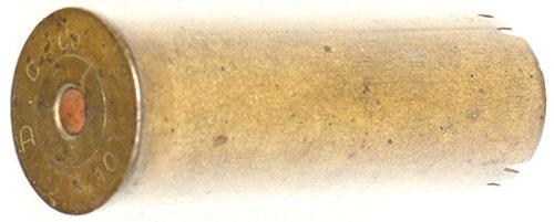 H/S= ''D.C. Co. 10'', Empty brass shell, 2 3/8'' OAL., with a few crimped spots on end. Grade: Very Good ++ - Value: 2 to 50