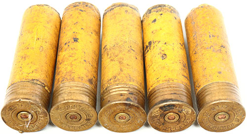 Lot of 5 Winchester, 10ga REPEATER, loaded paper shotshells, 2 3/4'' OAL, lots of age soiling. Grade: Good + - Value: 20 to 60