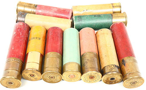 | Lot of 11 loaded paper shotshells, 8 ga, various manufacturers, ...
