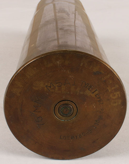 US, 75mm M5A1 Type 1 empty shell, Lot TBC-3-110, B.Co 1943. OAL: 10 5/8''. Grade: Very Good ++ - Value: 10 to 100