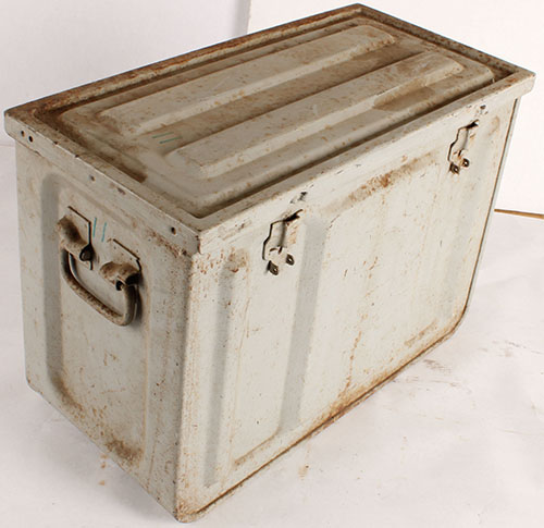 US, Mk3 Mod 1, 20mm Ammo box, W.M., 1944 dated, inside has rust. All lid latches are missing. Comes with a bunch of wood & carboard dividers for a single cartridge collection. Grade: Very Good - Value: 10 to 40