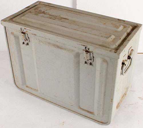 US, Mk3 Mod 1, 20mm Ammo box, W.M., 1943 dated, inside has rust. All lid latches are missing. Comes with a bunch of wood & carboard dividers for a single cartridge collection. Grade: Very Good - Value: 10 to 40