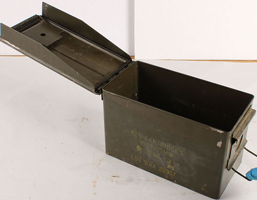 US, M2A1 .50 cal, metal ammo can, empty, inside is clean with no rust. Grade: Excellent - Value: 10 to 30