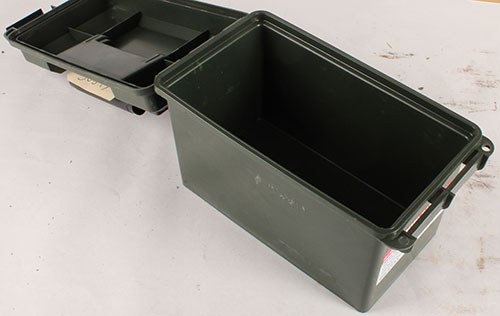 | Plastic, .50 cal ammo can, empty, inside is clean. Grade: Excell...