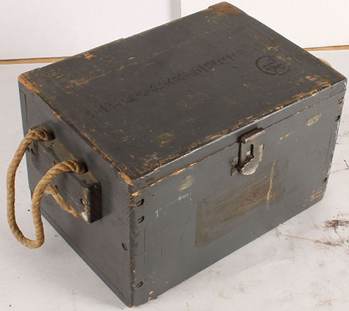 Japanese, Ammo crate, empty, has Japanese marking on the top, gray paint. Grade: Very Good ++ - Value: 10 to 40