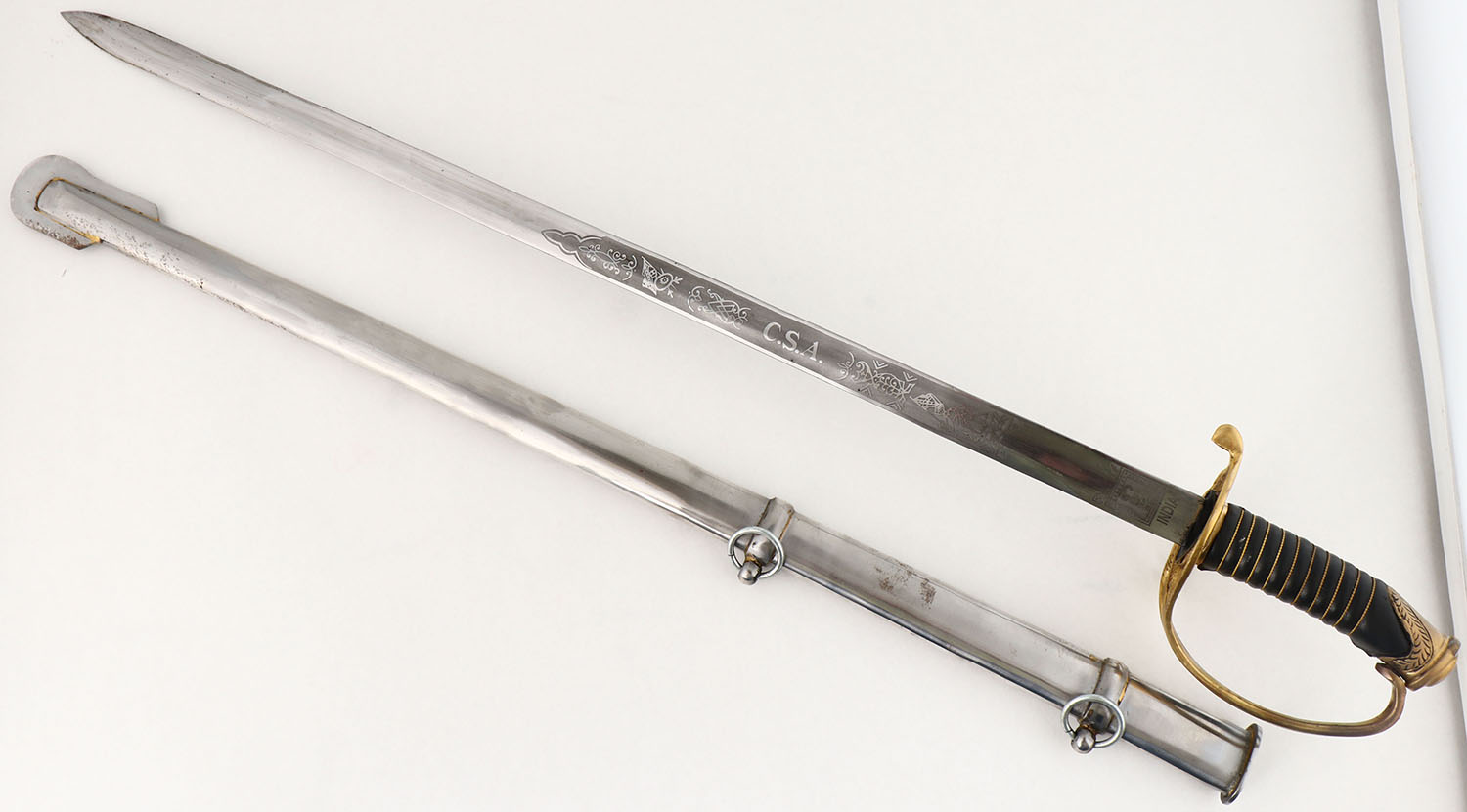 | Confederate, foot officers saber & scabbard, modern Indian repl...