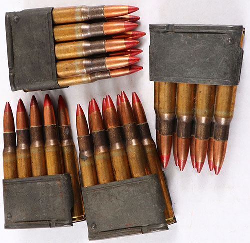 Lot of 32 Rds. Of red tip tracer .30-06 in M1 Garand Enbloc clips. H/S: ''SL 4''. Ammo is very good. Grade: Very Good ++ - Value: 30 to 60