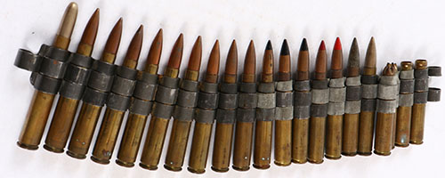 Linked .30-06, mix of blanks, bullet type & age. Ammo ranges from very good to good. Grade: Very Good ++ - Value: 10 to 30