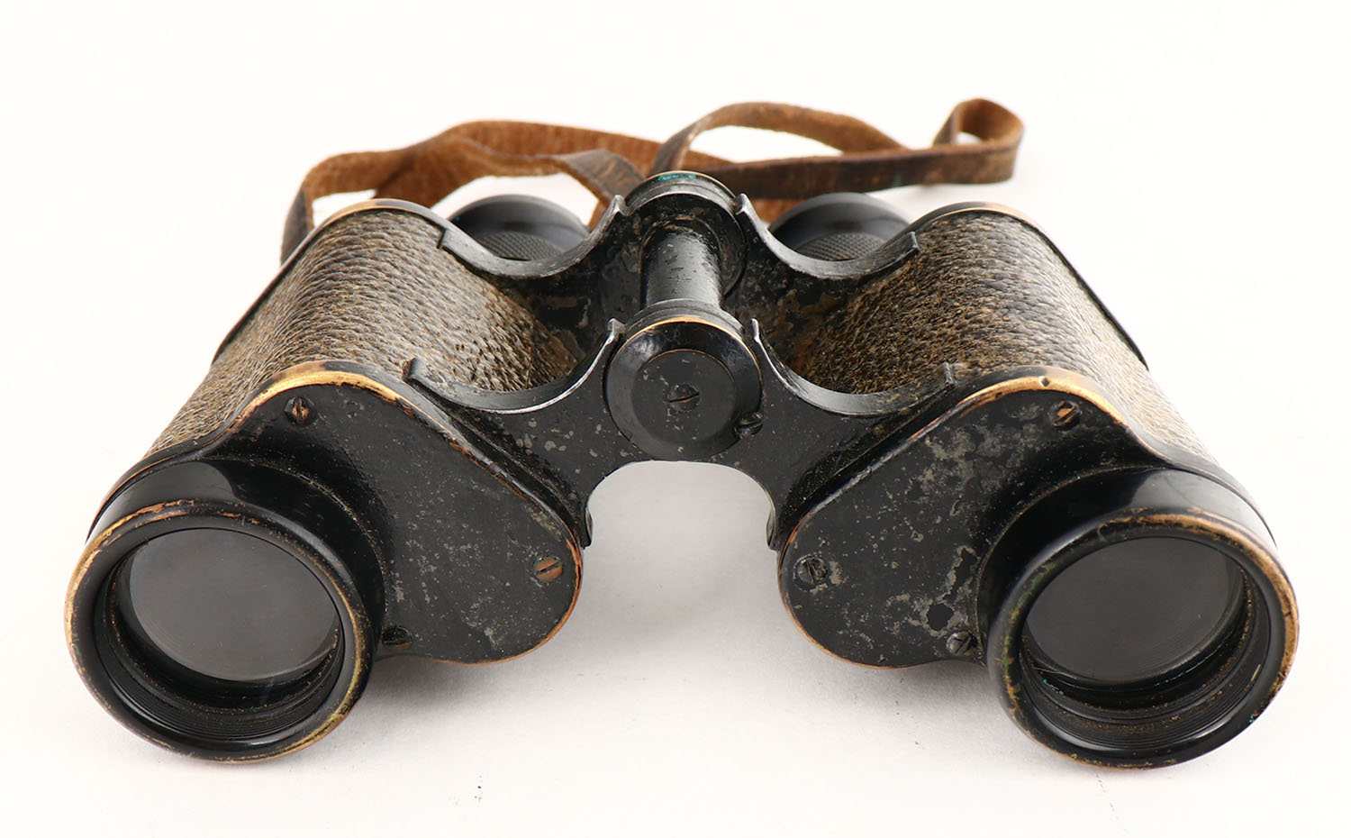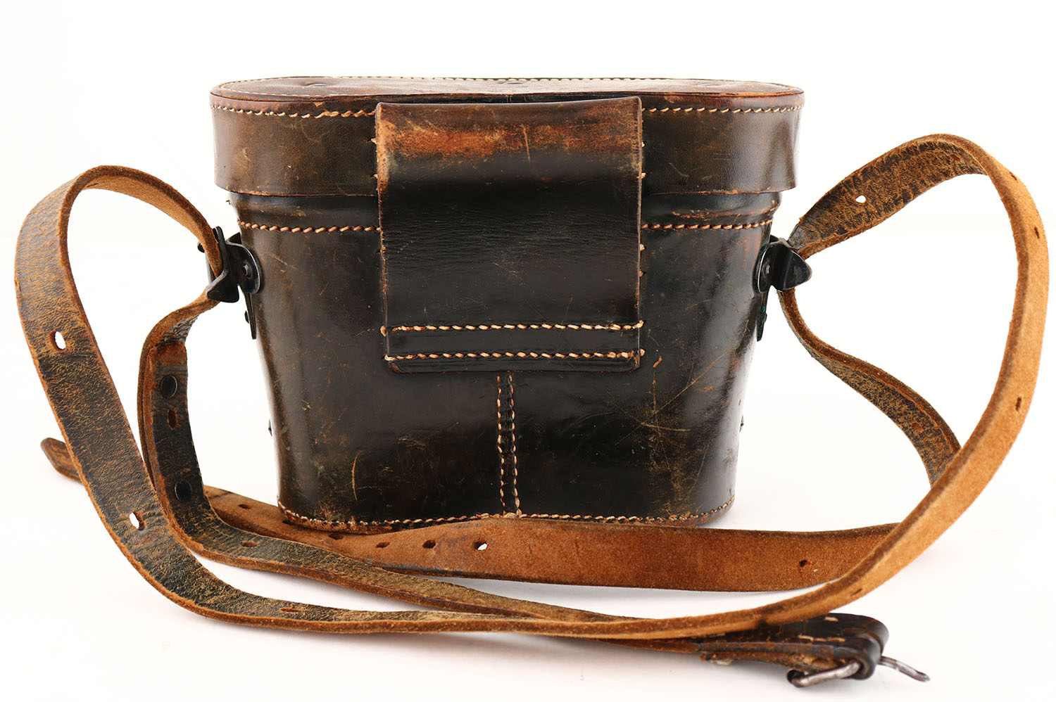 RARE!!, G.rodenstock Munchen, WW1 Model H/6400 6x30, field Binoculars with RARE leather carrying case. Brass/leather construction with black paint, the paint & leather have wear from use & age, but are in still great condition. The left side is marked ''R'' in a circle, ''G.RODENSTOCK'', ''MUNCHEN''. The right side is marked ''Dienstglass'' (service glass), ''6 X 30'', ''176569'', ''M H/6400''. The leather case has both the carrying strap, as well as a belt loop on the back which was very uncommon. The leather case has scratches, cracking, & normal wear from use/age. The front of the lid is marked with the same G.rodenstock Munchen logo that's on the binoculars. Grade: Excellent - Value: 150 to 300
