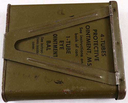 US, Protective Ointment Kit M5, empty, has rust & brown patina. Grade: Very Good ++ - Value: 10 to 40
