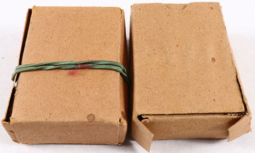 Lot of two, German, WW2 8mm Mauser, 15 Rd. boxes, with 7 extra Rounds totaling 37 Rds. On box has ammo on clips, the labels are missing from boxes, ammo is steel case & is dated 1945. ammo ranges from good to very good with rust & corrosion on some Rds. Grade: Good ++ - Value: 20 to 40