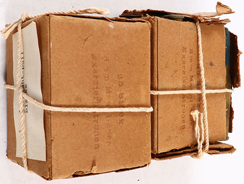 Lot of two, Austrian, 8mm Mannlicher wood bullet blanks, 25 Rd. boxes, both full, brown boxes with black print, boxed have rub wear & parts missing, ammo ranges from very good to good. Grade: Very Good - Value: 10 to 40
