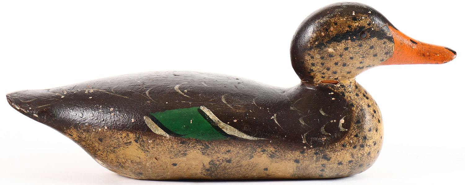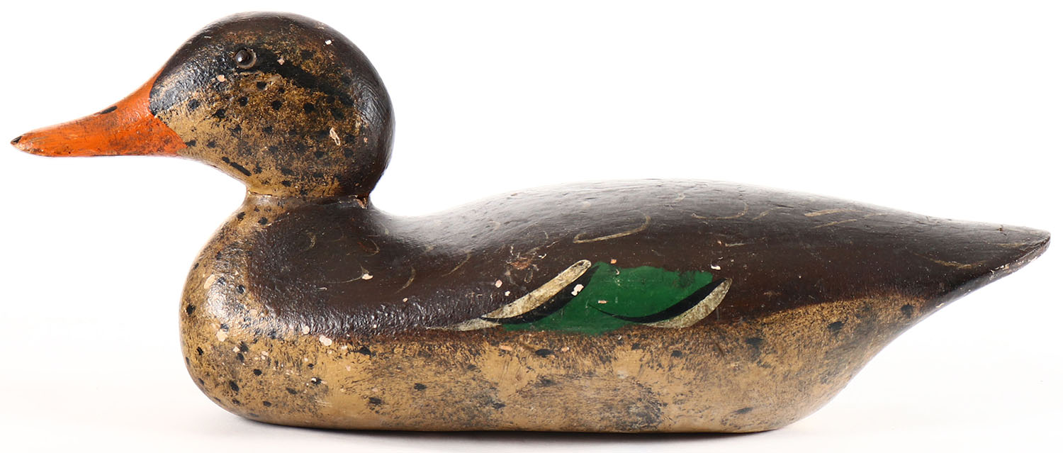 Mallard Hen by Mason Decoy Company, Detroit, MI, 1896-1924, Standard Grade, glass eyes, solid wood, original paint, structurally excellent. Grade: Very Good ++ - Value: 100 to 200