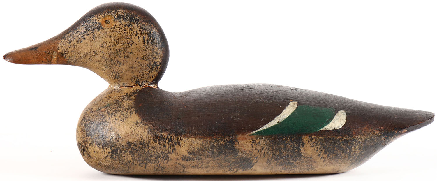 Mallard Hen by Mason Decoy Company, Detroit, MI, 1896-1924, Standard Grade, painted eyes, solid wood, original paint, structurally excellent. Grade: Very Good ++ - Value: 150 to 250
