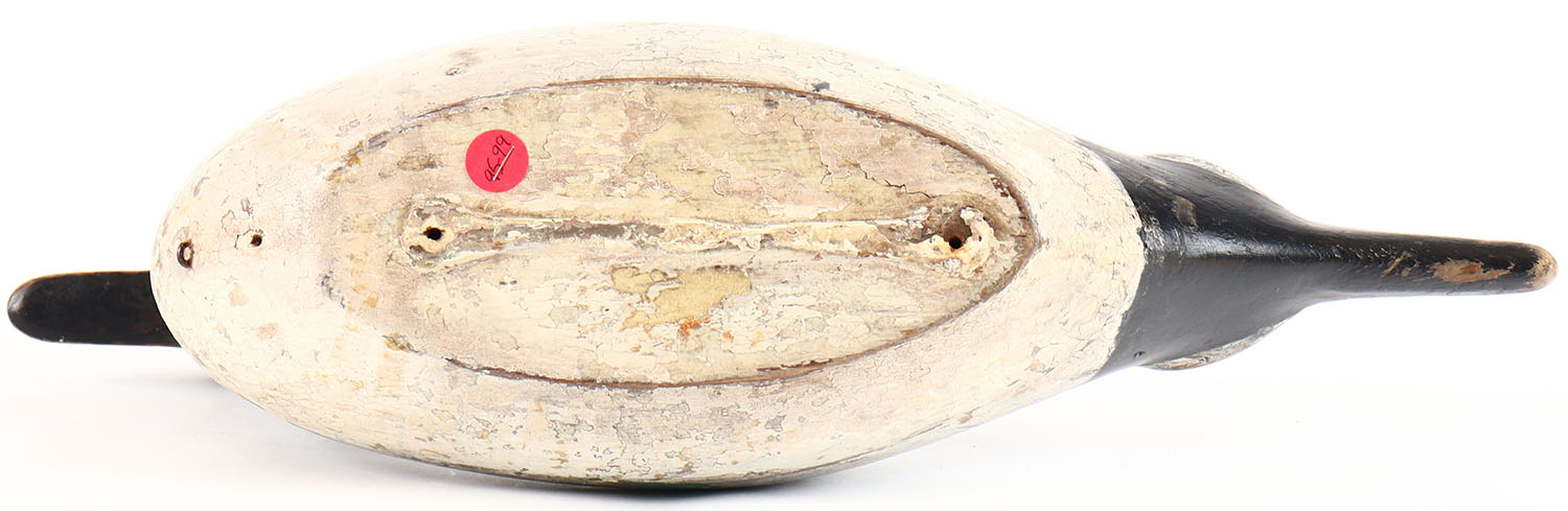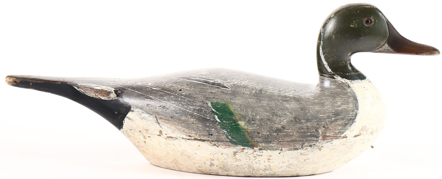 Pintail Drake attributed to Charles Bergman (1856-1946), Astoria, OR, glass eyes, solid wood, shows mostly working repaint with some original showing, structurally excellent. Grade: Excellent - Value: 100 to 200