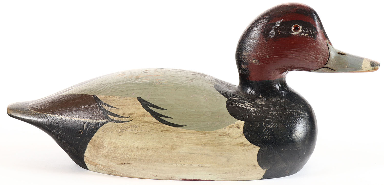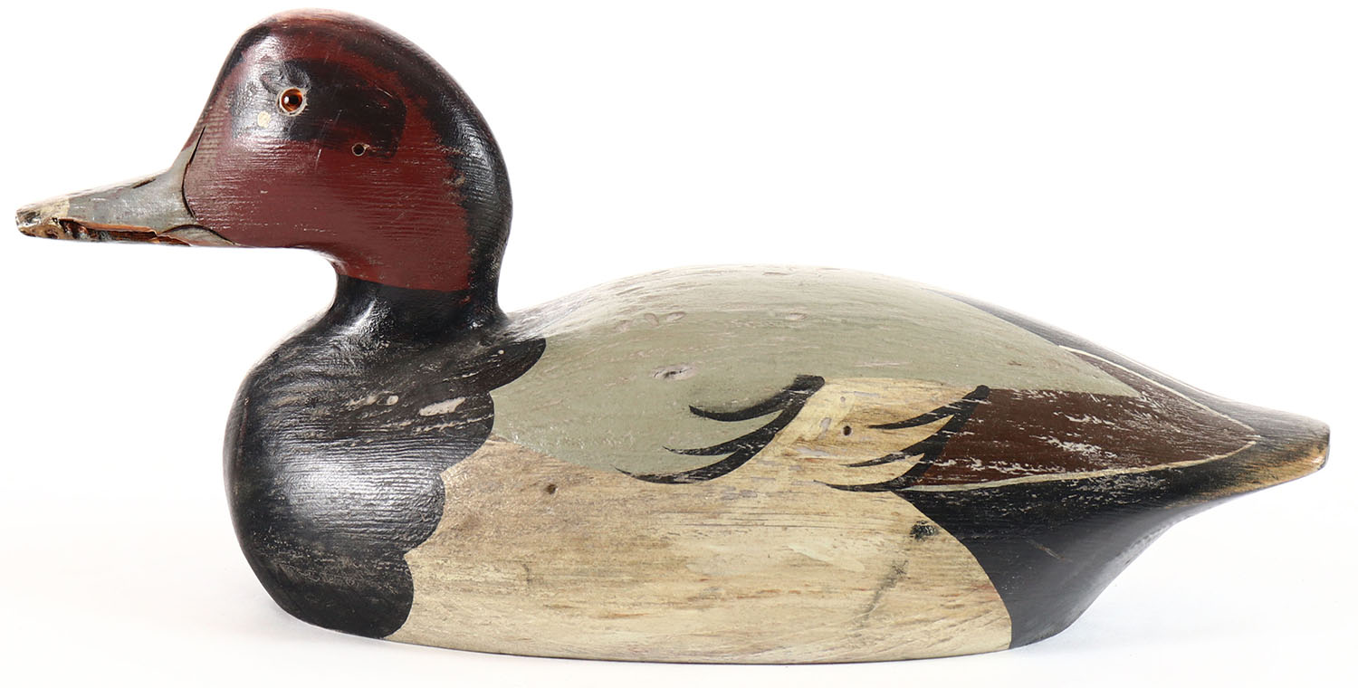 Redhead Drake by Tom Taber, glass eyes, solid wood, original paint, sliver of wood off bill. Grade: Excellent - Value: 6 to 20