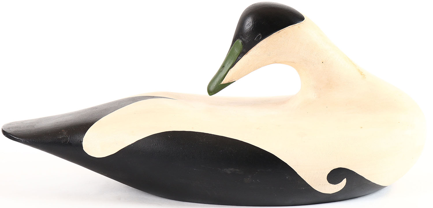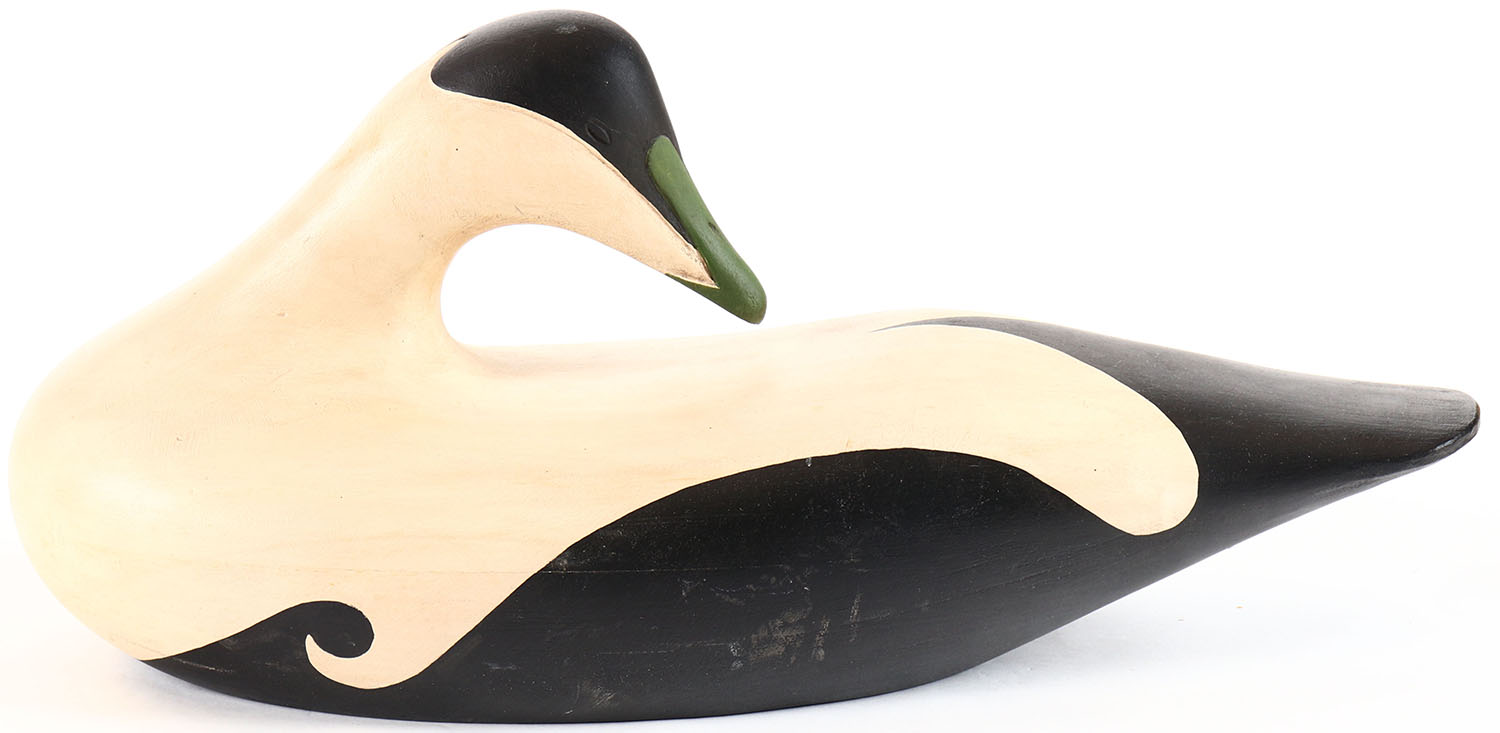 Preening Eider By unknown maker, carved eyes, solid wood, original paint, structurally excellent. Grade: Excellent + - Value: 20 to 40