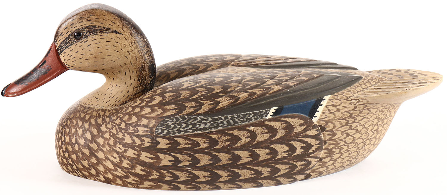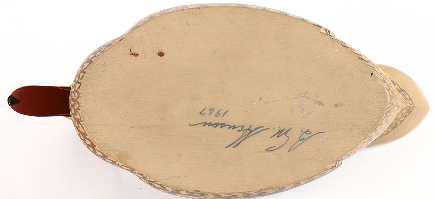 Mallard Hen by B.M. Henson, glass eyes, solid wood, original paint, structurally excellent. Grade:Excellent + - Value: 30 to 60