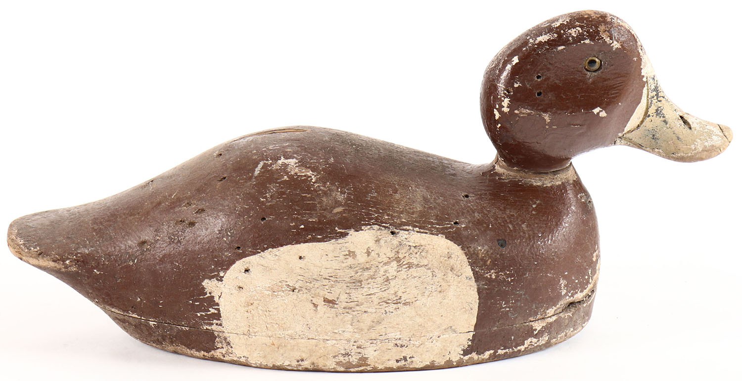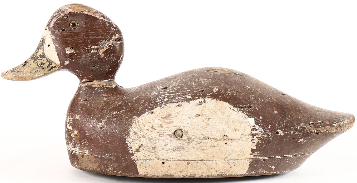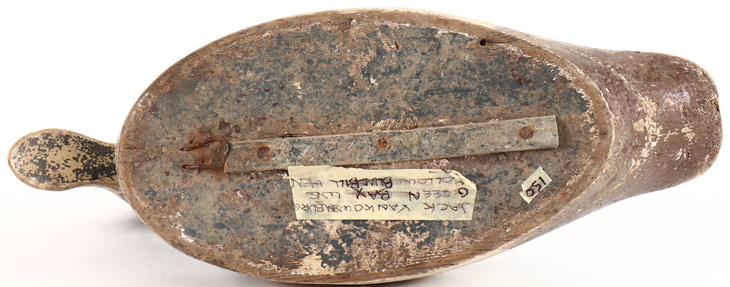 Bluebill Hen by Jack Vankowemburg, Green Bay WI, glass eyes, hollow wood, working repaint, structurally excellent. Grade: Very Good + - Value: 20 to 40