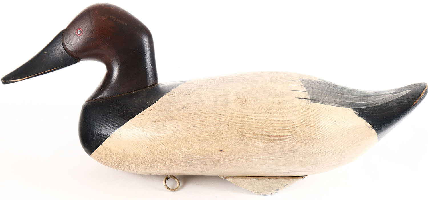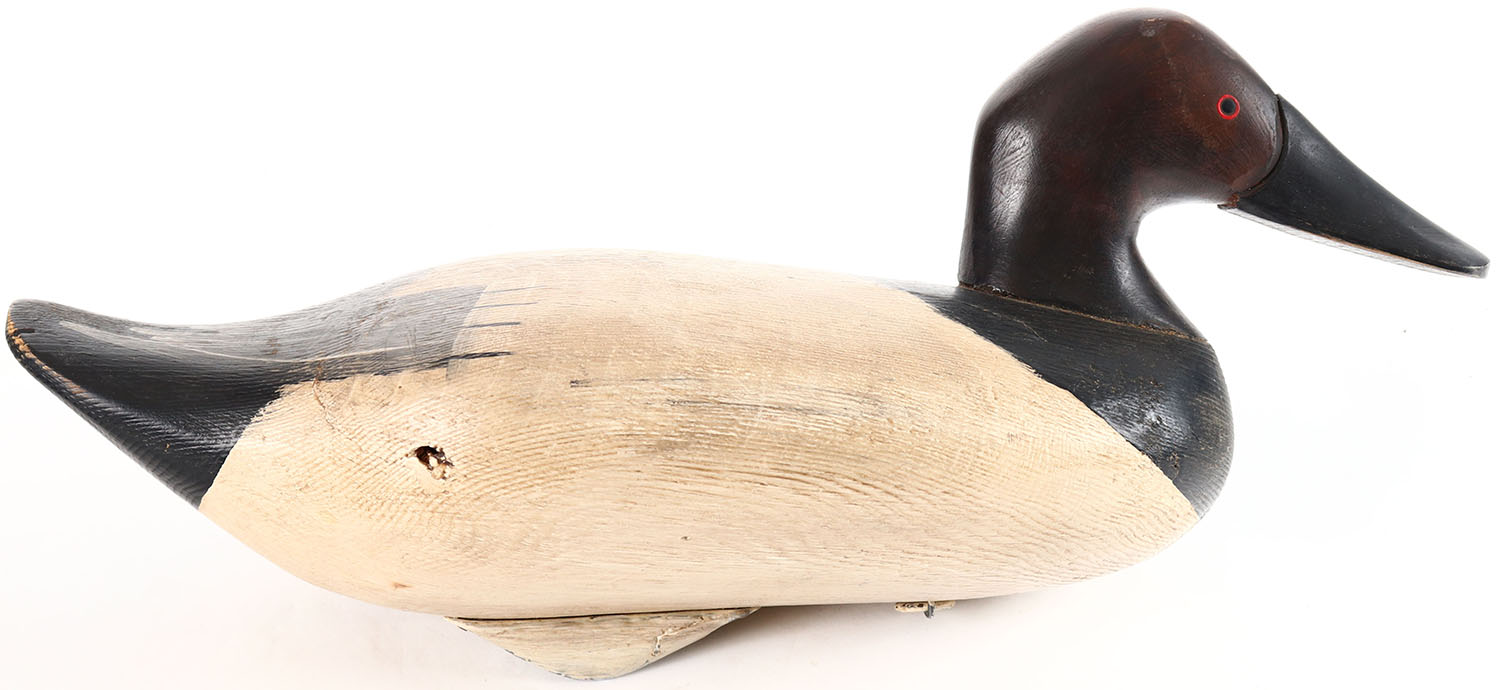 Canvasback Drake by unknown Maryland maker, painted eyes, solid wood, original paint, structurally excellent. Grade: Excellent - Value: 30 to 60