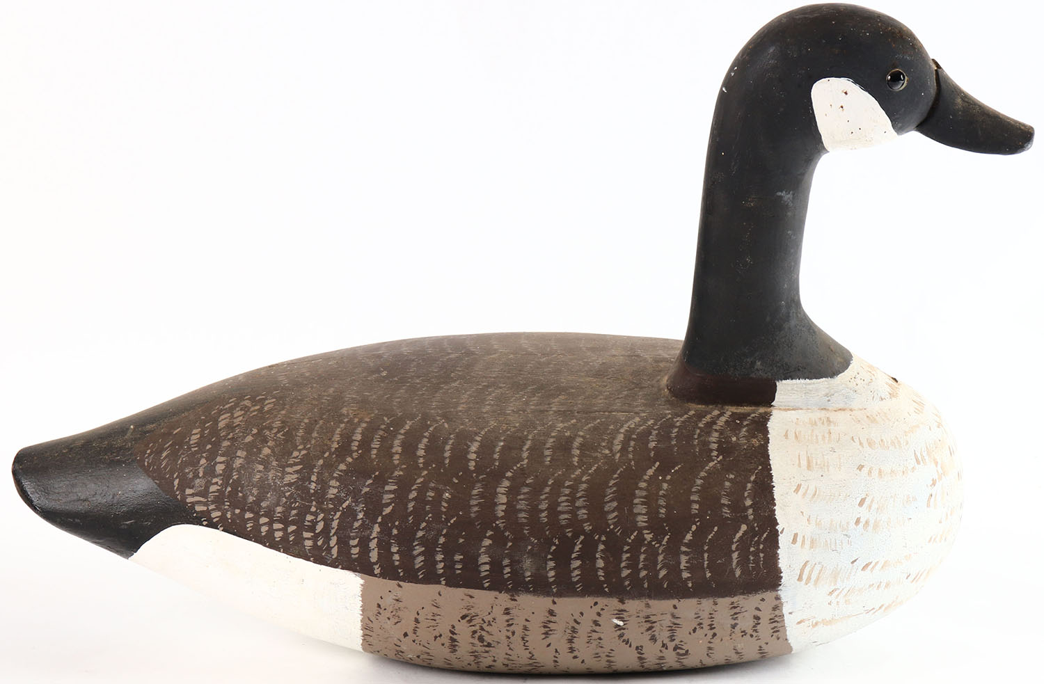 Canada Goose by unknown Maryland maker, glass eyes, solid wood, original paint, structurally excellent. Grade: Excellent - Value: 50 to 100