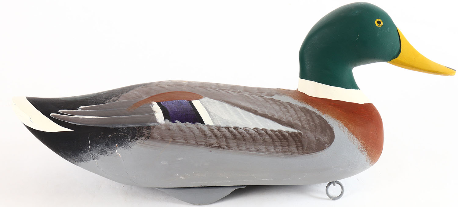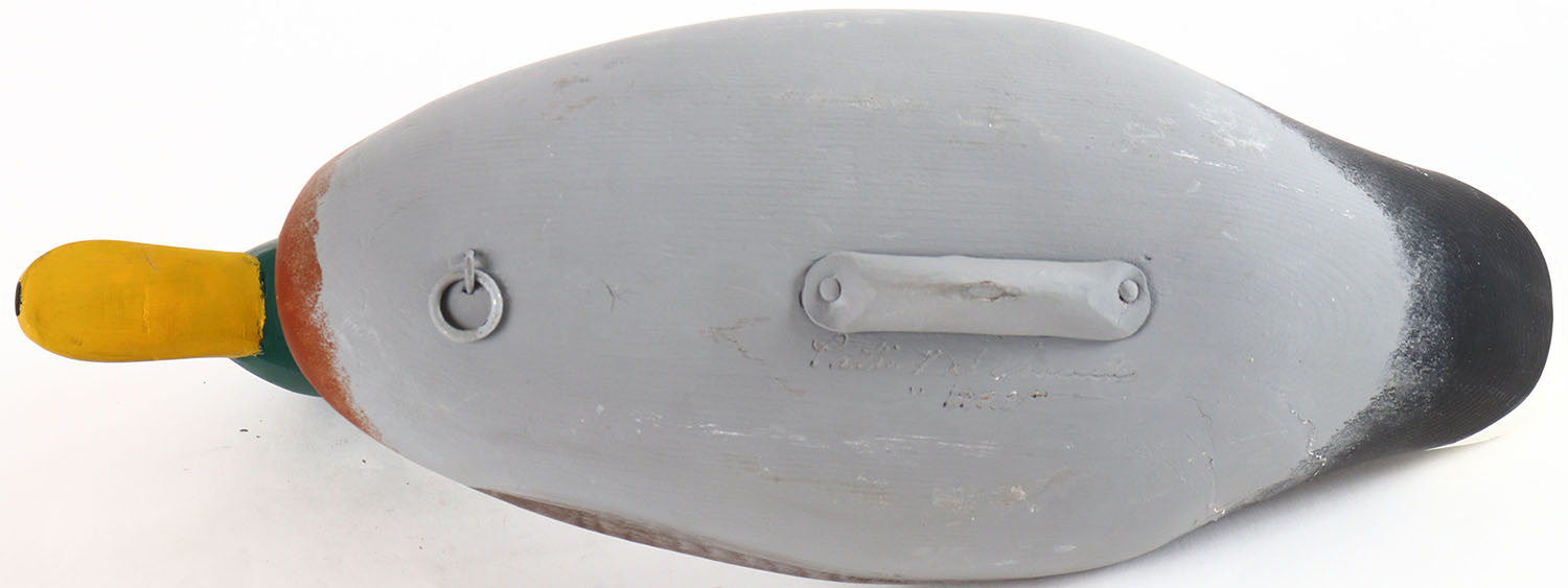 Mallard Drake by Patrick Vincent, Churchville, VA, painted eyes, solid wood, original paint, structurally excellent, signed on bottom by PATRICK VINCENT. Grade: Excellent ++ - Value: 30 to 60