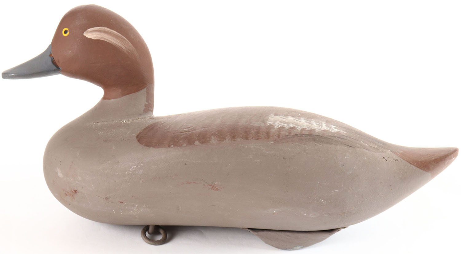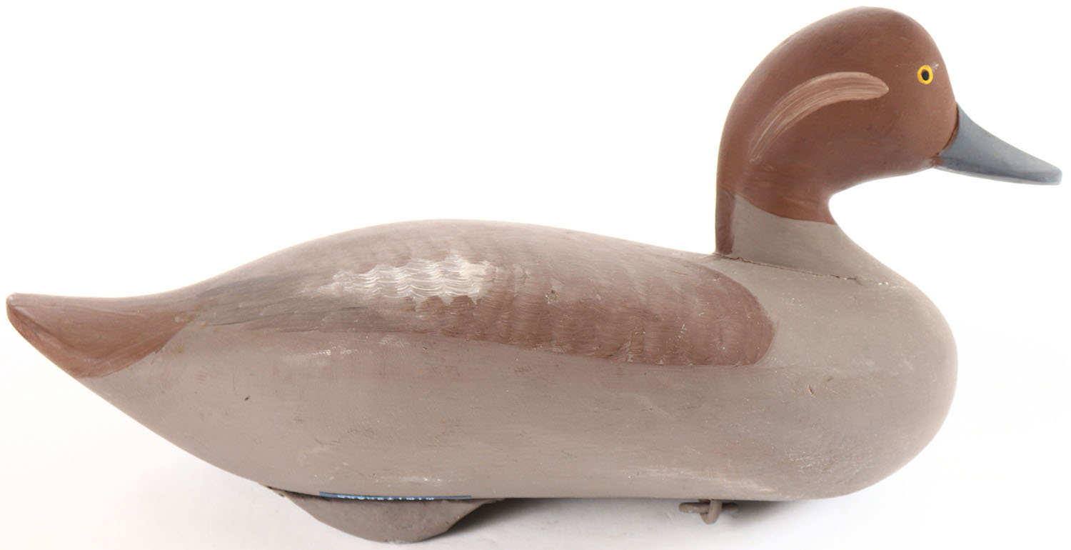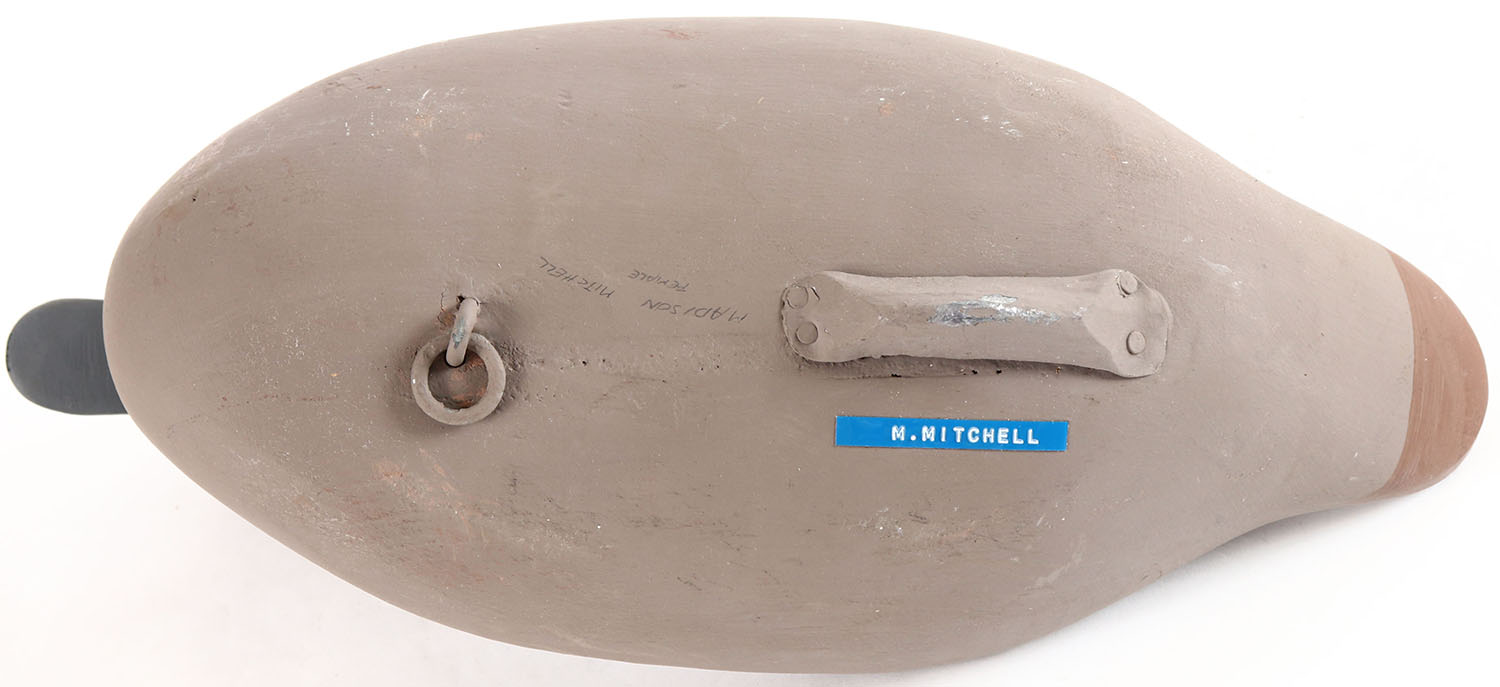 Bluebill Hen by Madison Mitchell, painted eyes, solid wood, original paint, structurally excellent, signed by MADISON MITCHELL on bottom. Grade: Excellent + - Value: 70 to 150