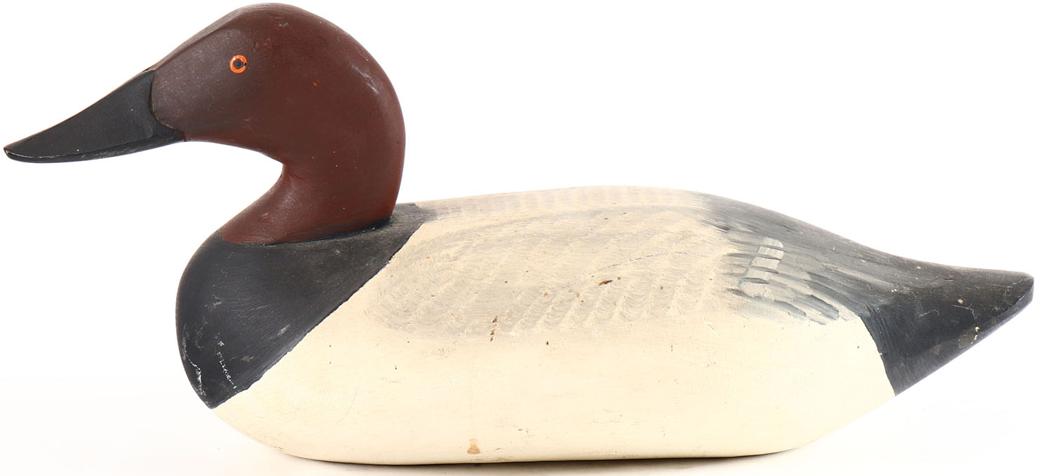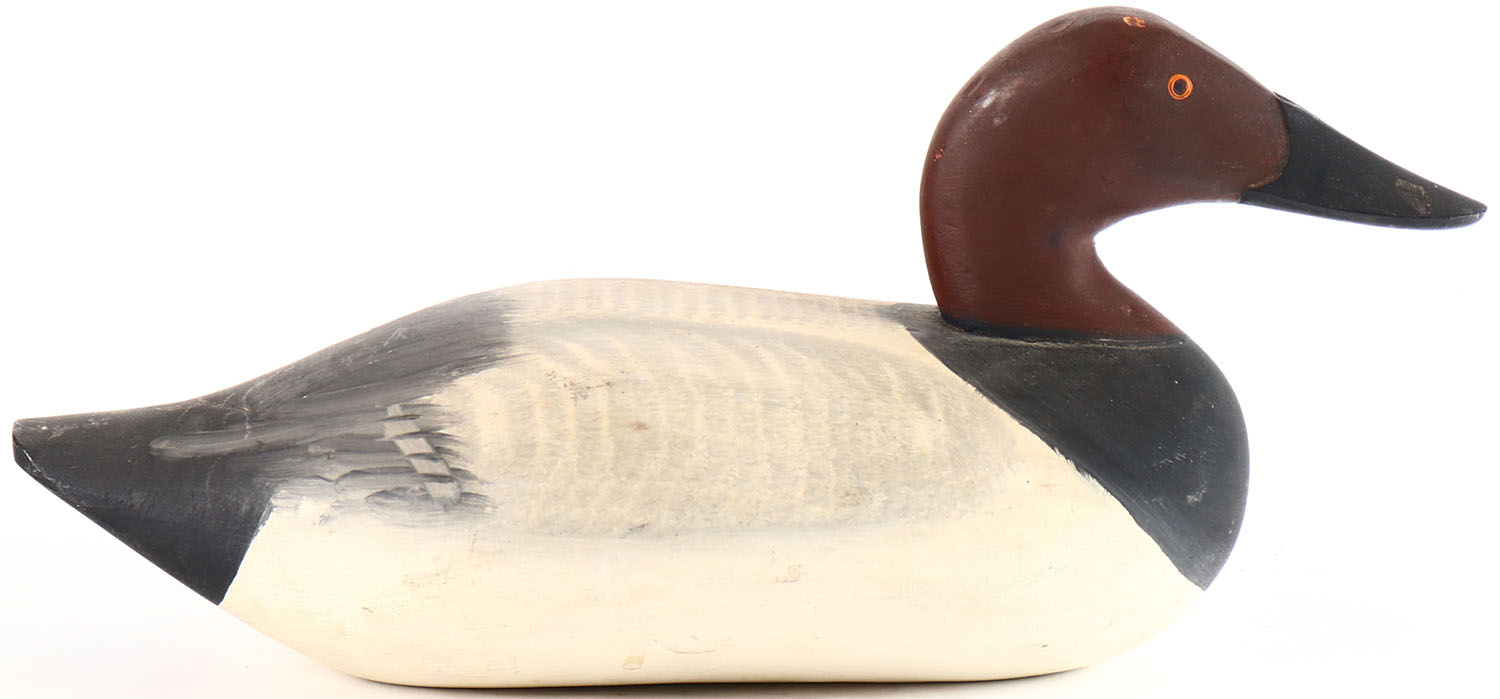 Canvasback Drake by unknown maker, painted eyes, solid wood, original paint, structurally excellent. Grade: Excellent - Value: 40 to 80