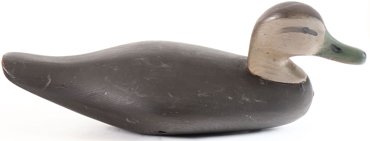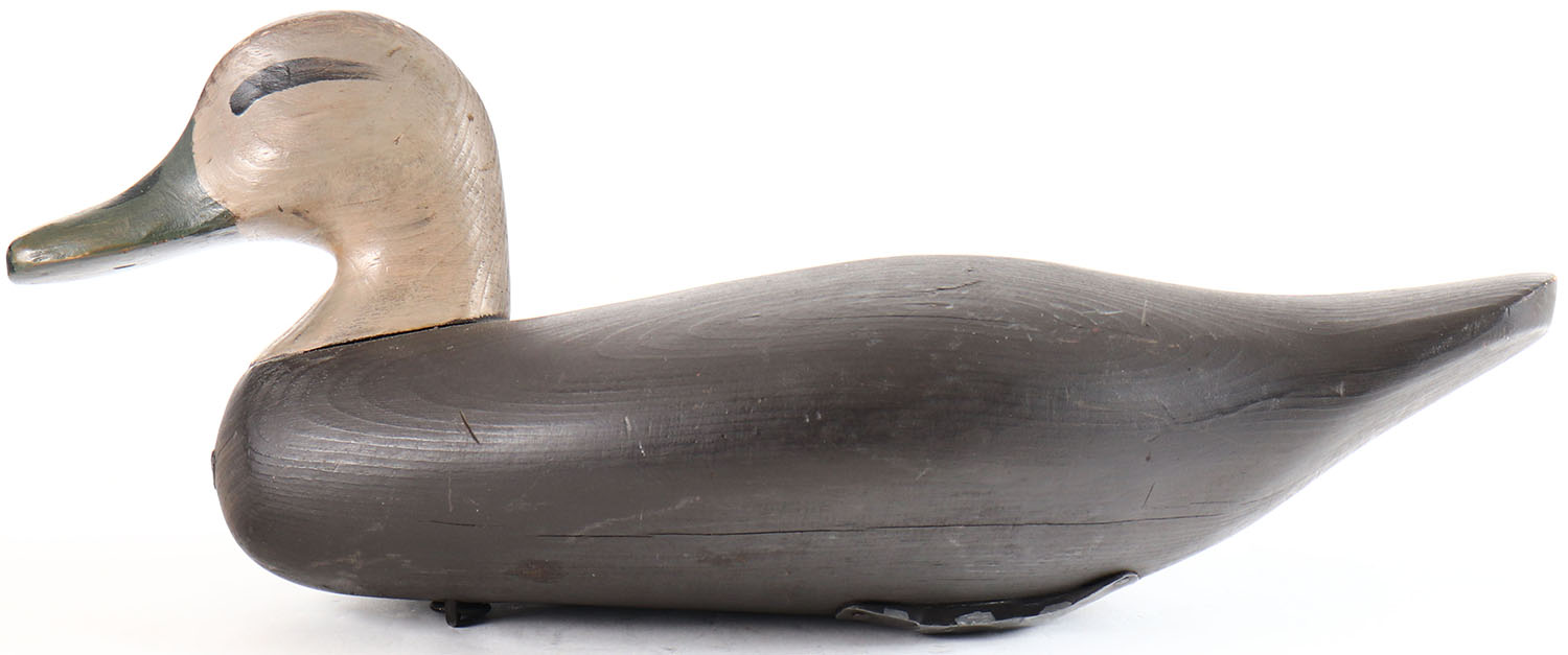 Black Duck by unknown Maryland maker, painted eyes, solid wood, head is repainted, structurally excellent. Grade: Excellent - Value: 20 to 40