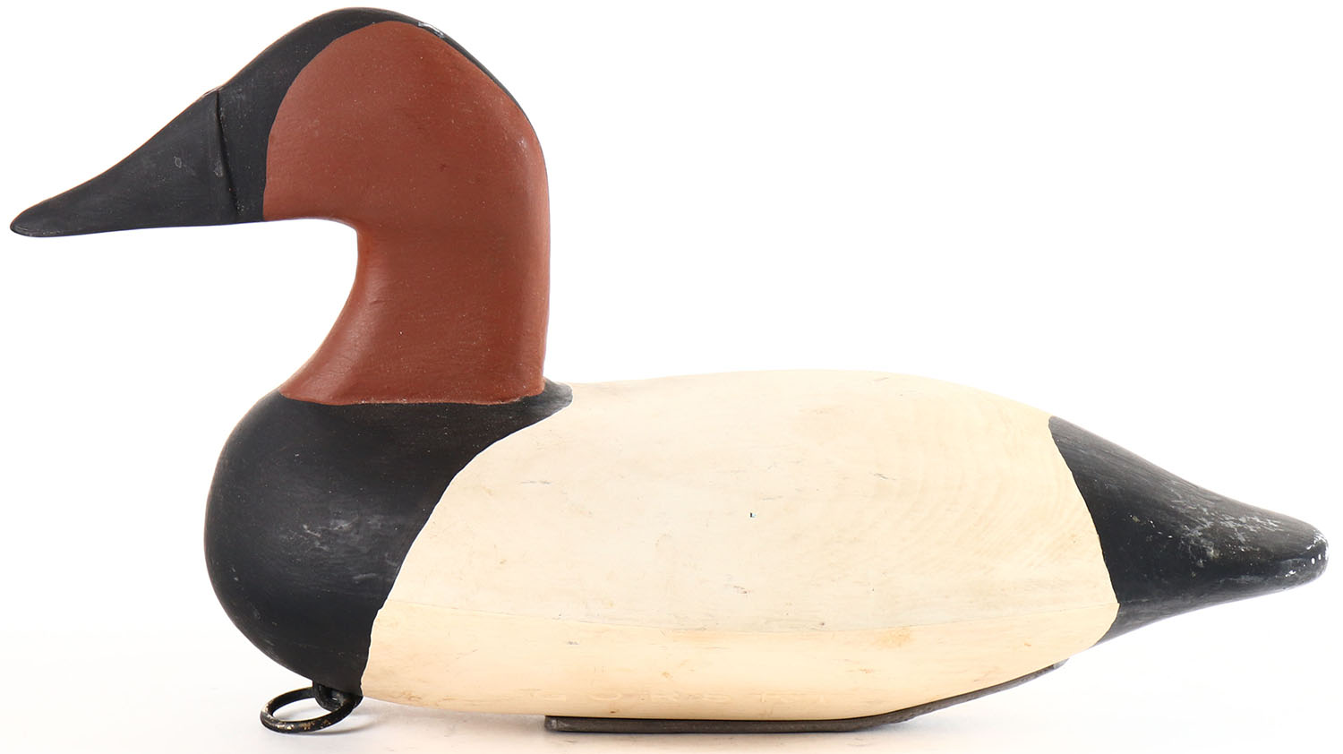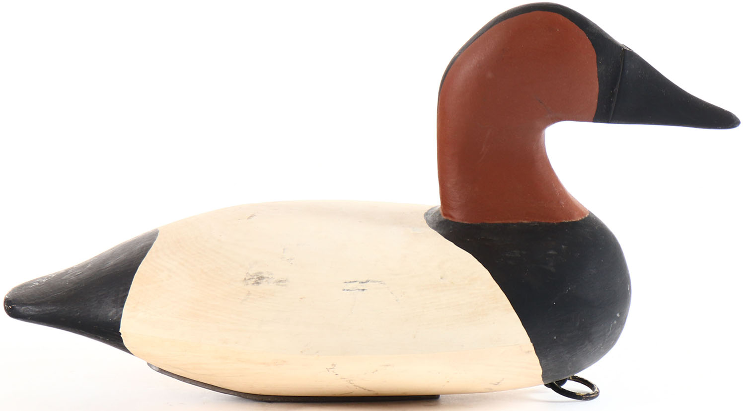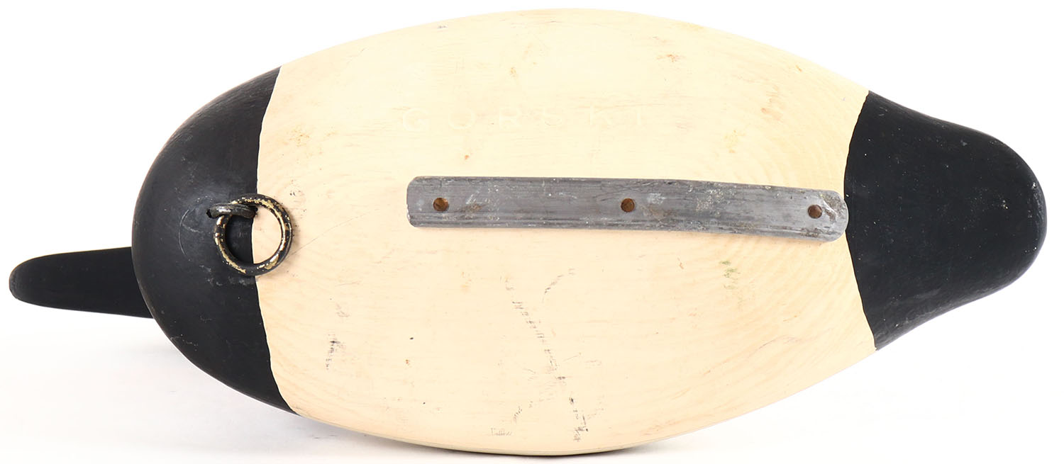Canvasback Drake by unknown maker, no eyes, solid wood, original paint, branded GORSKI on bottom. Grade: Excellent + - Value: 20 to 40