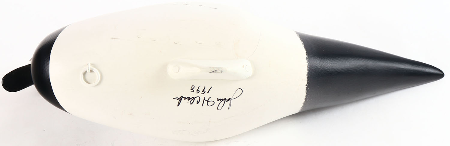 Long Tailed Duck by John H. Clark, Havre De Grace, MD, Painted eyes, solid wood, original paint, structurally excellent, signed on bottom. Grade: Excellent ++ - Value: 20 to 40