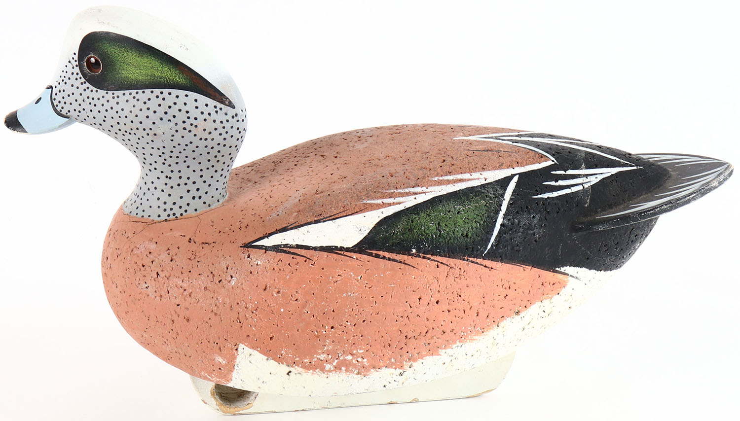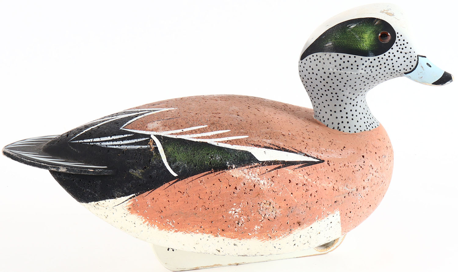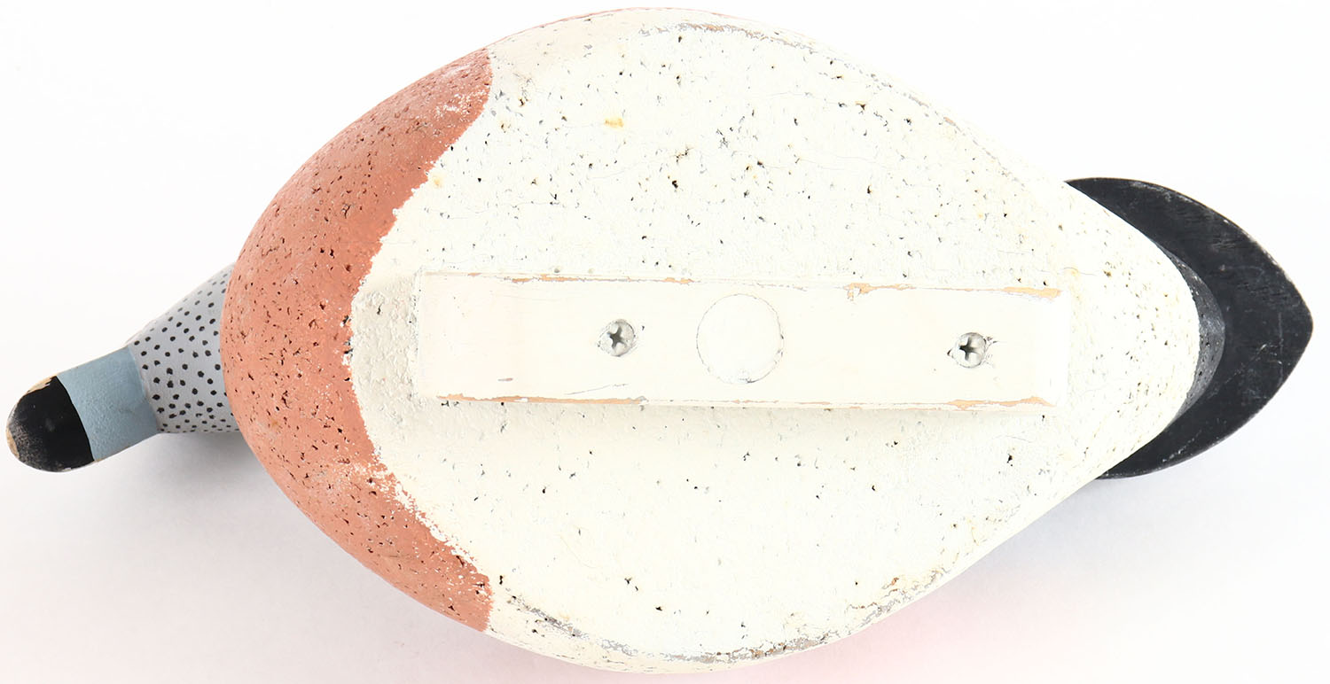 Widgeon by unknown maker, glass eyes, solid cork body, original paint, structurally excellent. Grade: Excellent + - Value: 10 to 30
