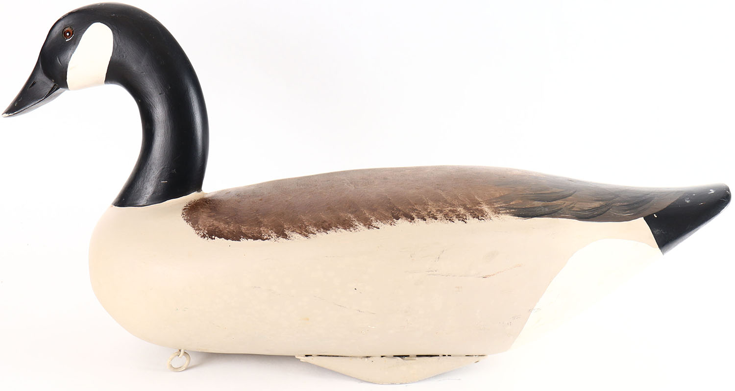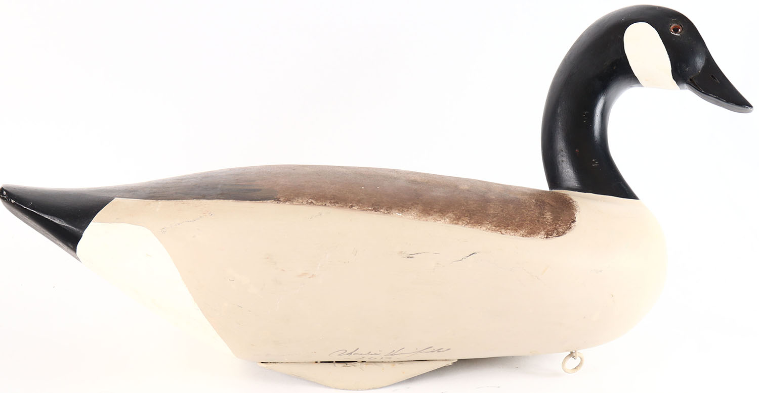 Canada Goose by unknown maker, glass eyes, solid wood, original paint, structurally excellent, signed on bottom by maker. Grade: Excellent - Value: 40 to 80