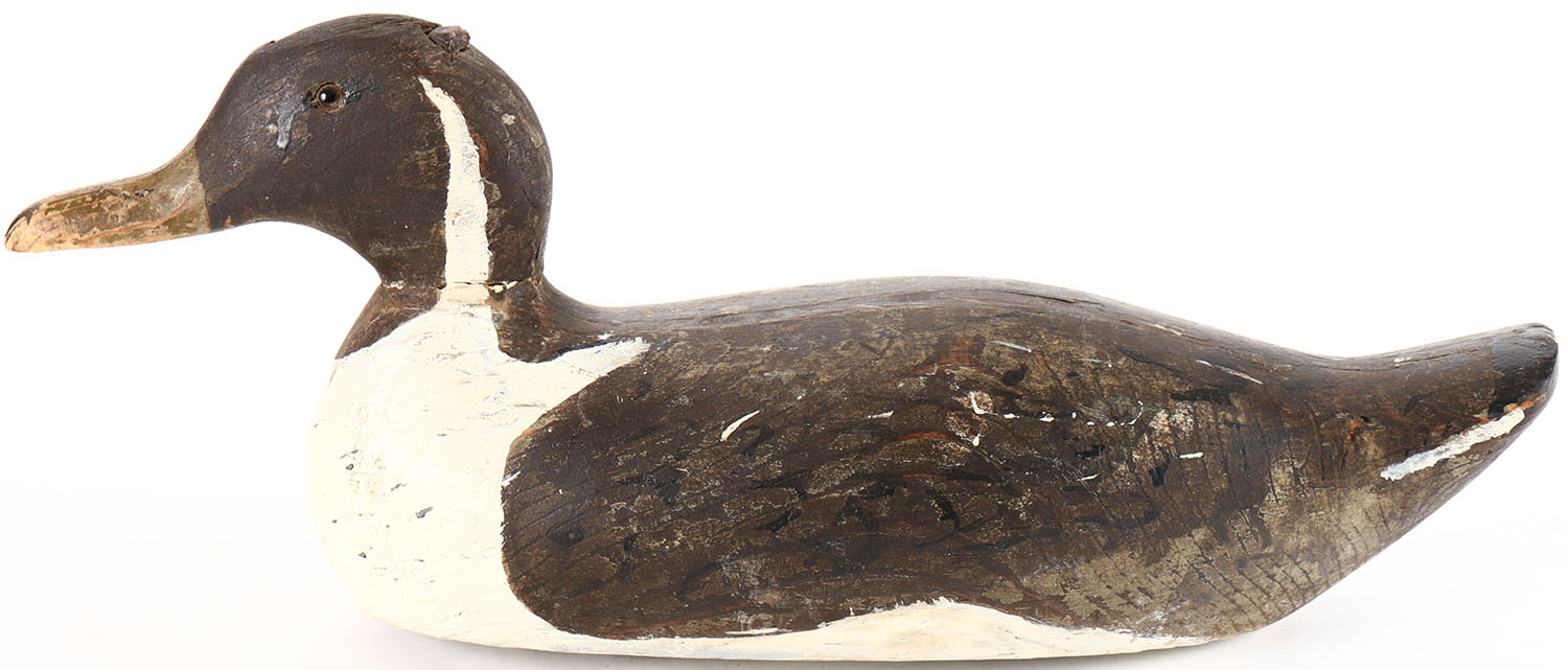 Pintail Drake by Pratt Decoy Co., glass eyes, solid wood, repainted, structurally excellent. Grade: Very Good ++ - Value: 10 to 20