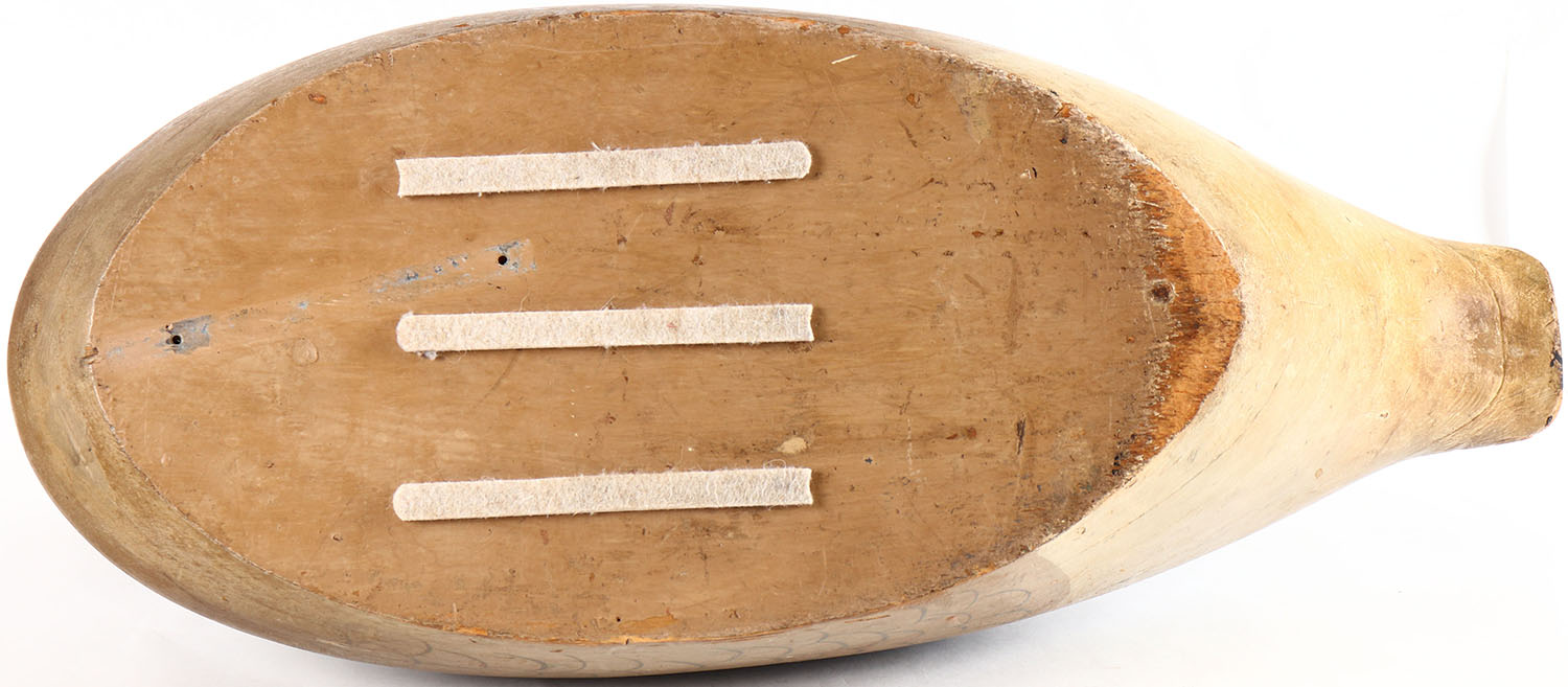 Canada Goose by unknown maker, painted eyes, solid wood, original paint, structurally excellent. Grade: Very Good ++ - Value: 50 to 100