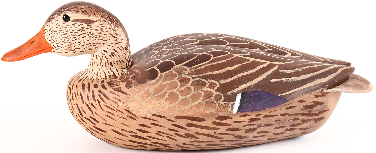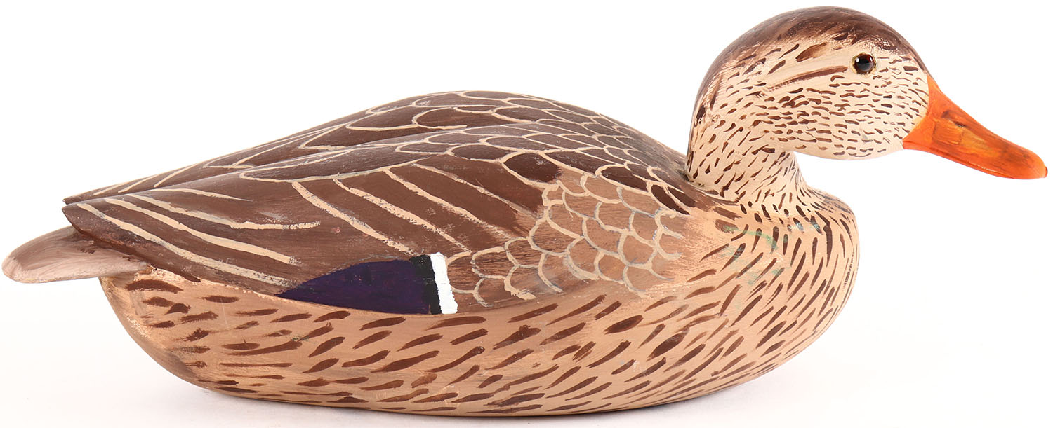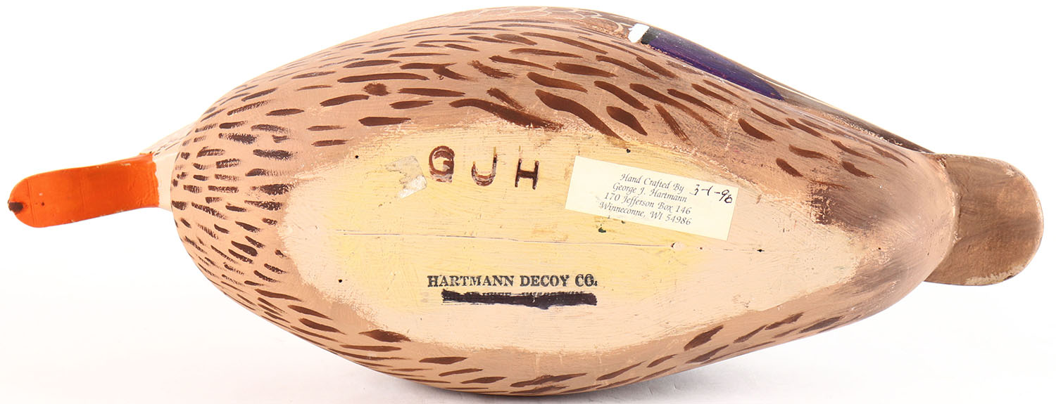 Mallard Hen by George J. Hartman, Hartman Decoy Co. Milwaukee, WI, glass eyes, solid wood, original paint, structurally excellent, branded by GEORGE J. HARTMAN on bottom. - Value: 20 to 60