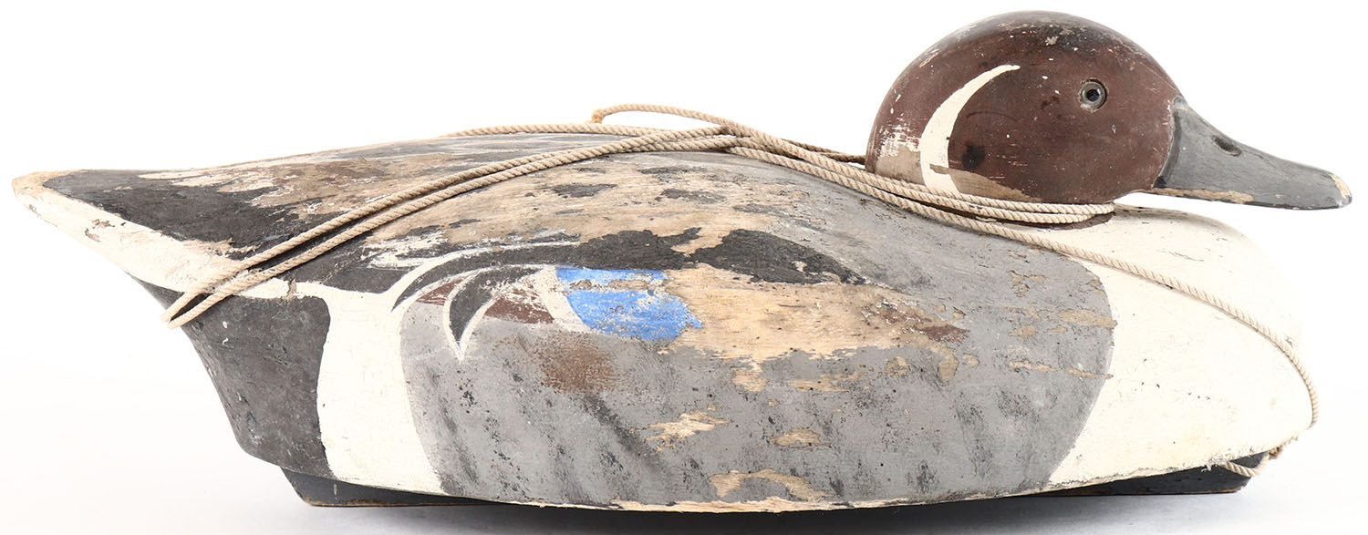 Pintail Drake by Wildfowler, glass eyes, solid balsa wood, mostly repainted, structurally excellent. Grade: Very Good ++ - Value: 10 to 30