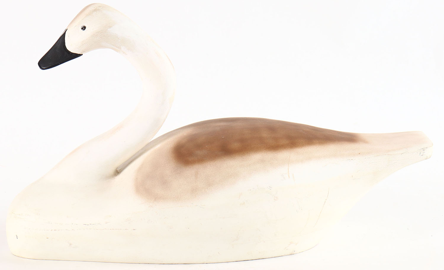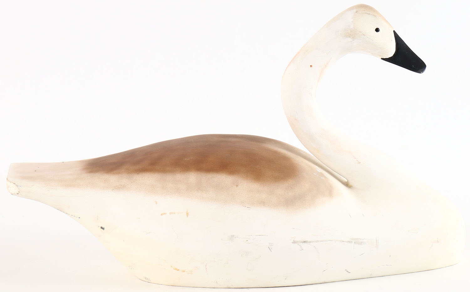 Swan by L.M. Burcham, Havre De Grace, MD Glass eyes, solid wood, original paint, structurally excellent, signed on bottom. Grade: Excellent + - Value: 30 to 60