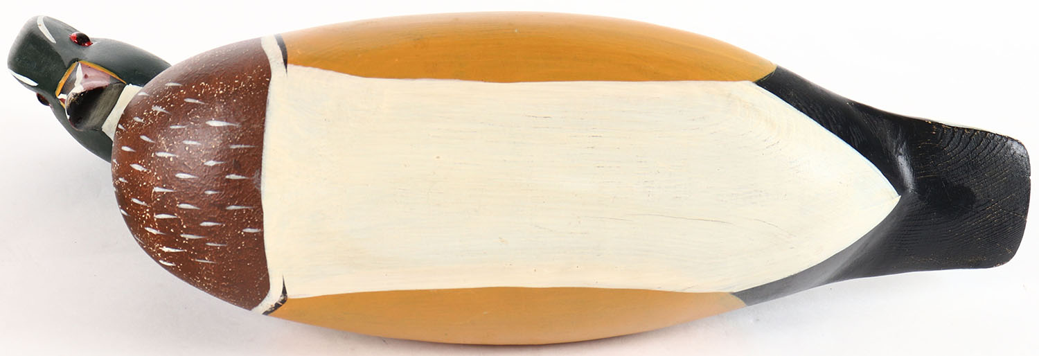 Preening Woodduck Drake by unknown maker, glass eyes, solid wood, original paint, structurally excellent. Grade: Excellent - Value: 20 to 40