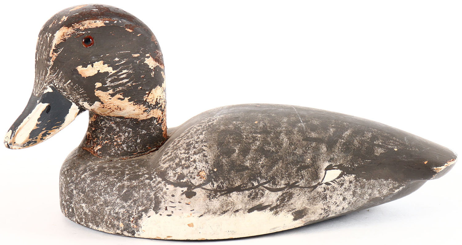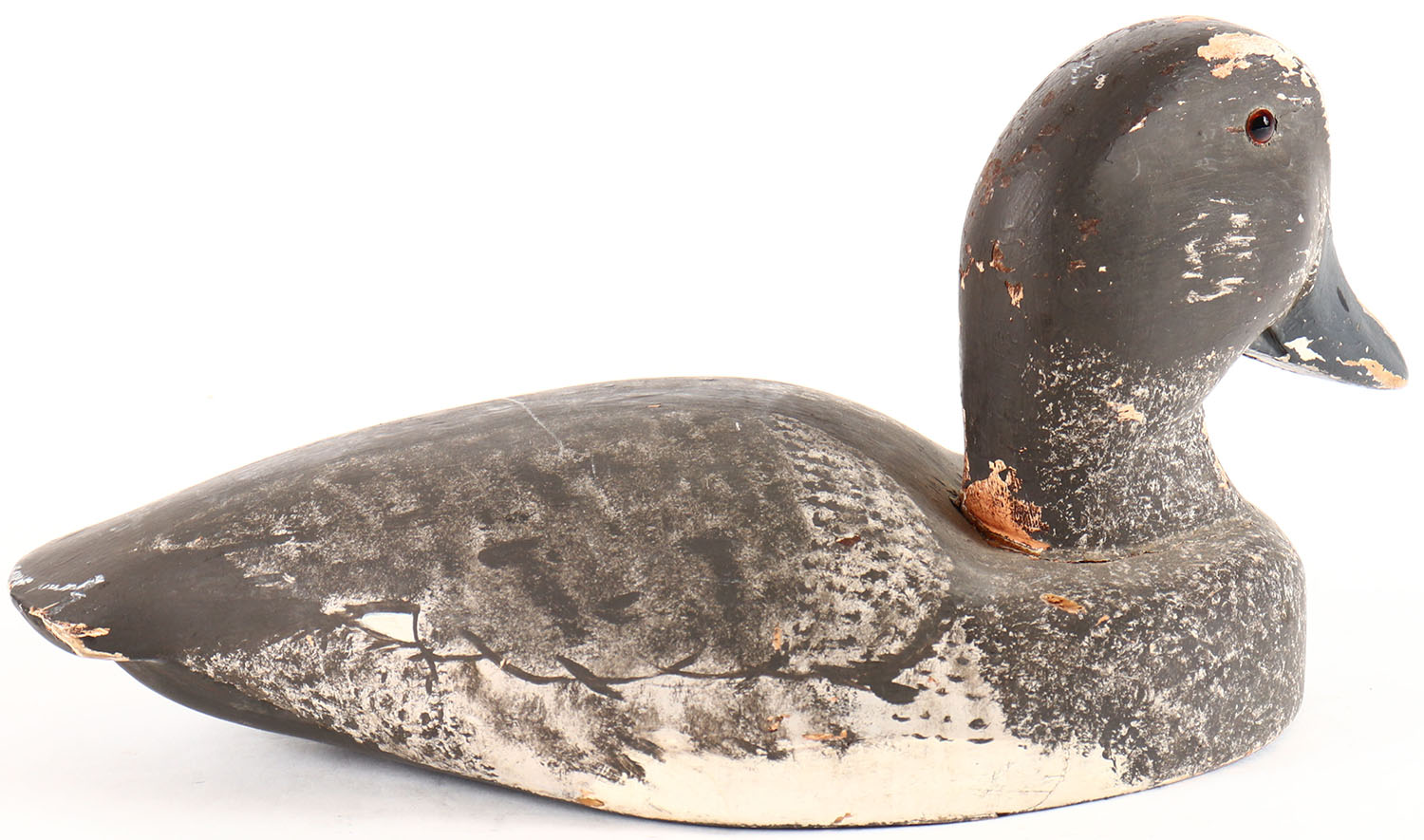 Bluebill Hen by unknown maker, glass eyes, solid wood, original paint, has paint chips. Grade: Very Good ++ - Value: 10 to 20