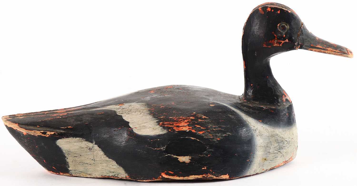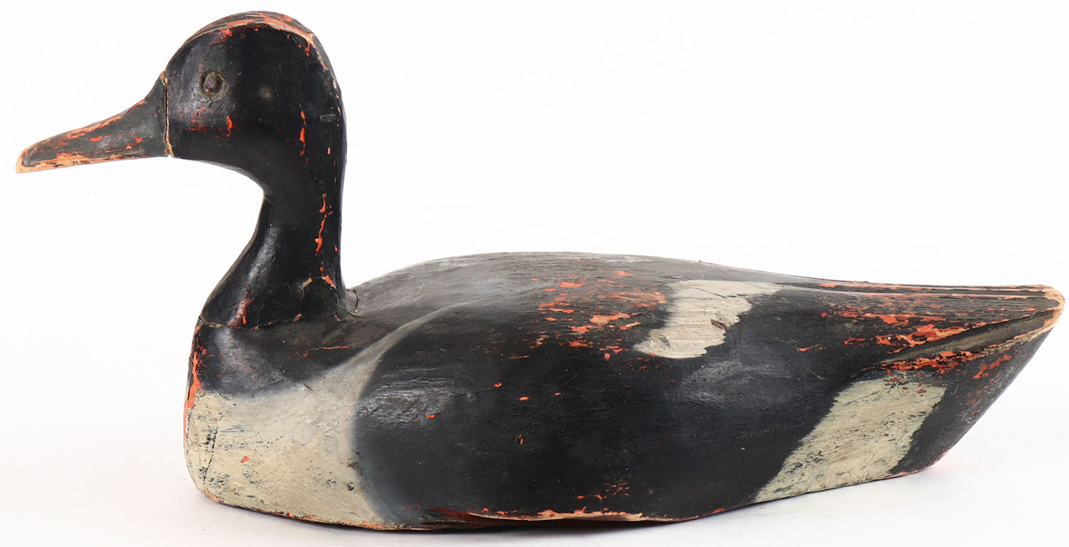 Unknown Drake by unknown European maker, tack eyes, solid wood, original paint, has wear to entire body. Grade: Very Good - Value: 10 to 20