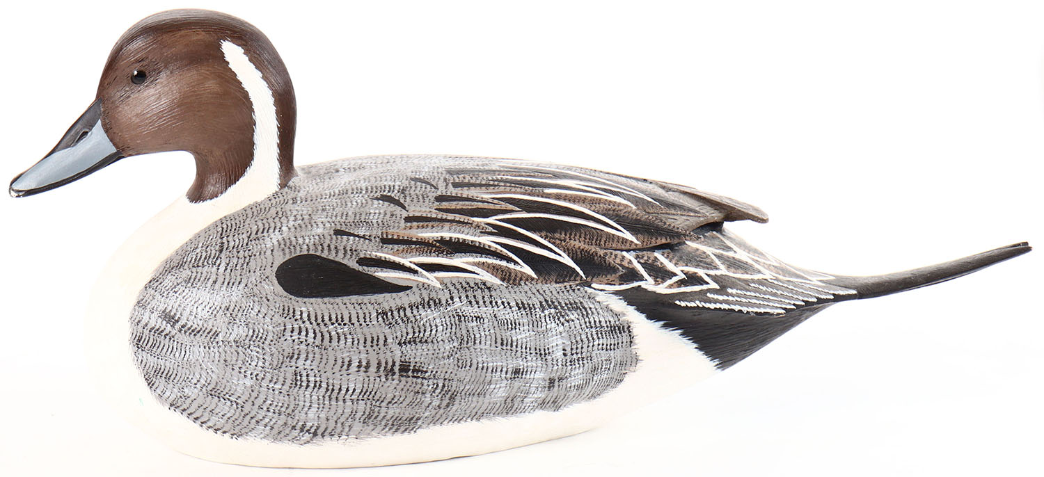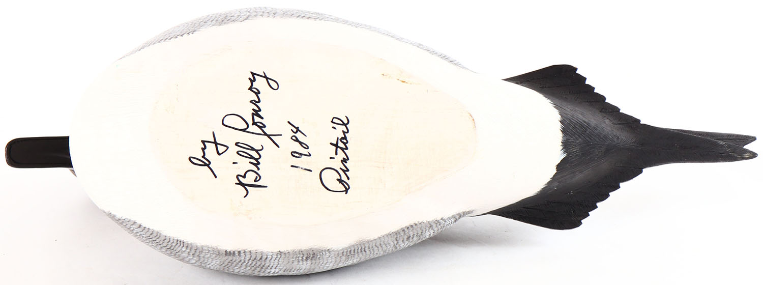 Pintail Drake by Bill Contoy, Jamestown, RI, glass eyes, solid wood, original paint, structurally excellent, signed on bottom. Grade: Excellent ++ - Value: 60 to 120