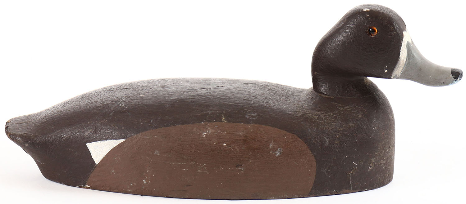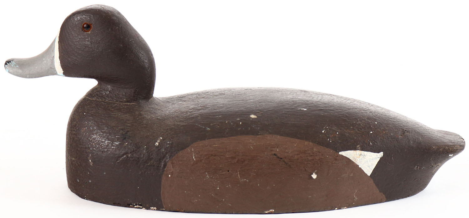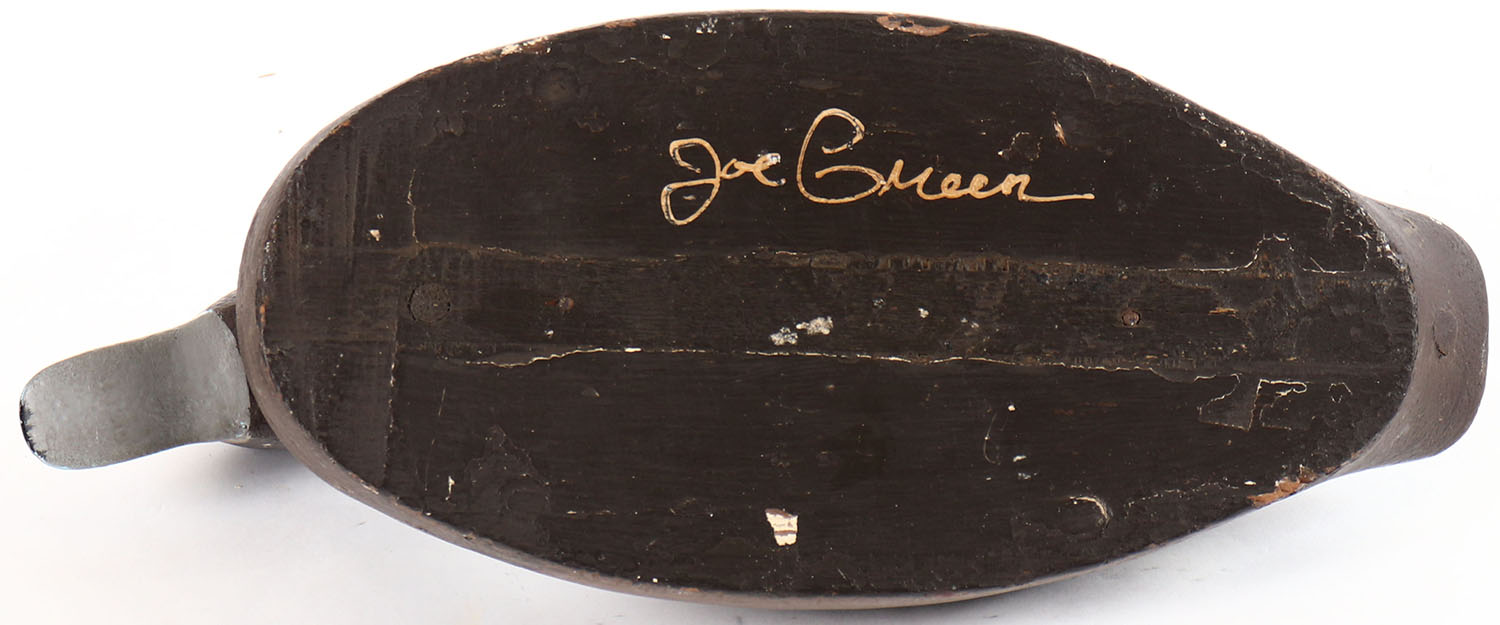 Bluebill Hen by Joe Green possibly the one from Citrus Heights, CA, glass eyes, hollow wood, apparent original paint, structurally excellent, signed on bottom. Grade: Excellent - Value: 20 to 40